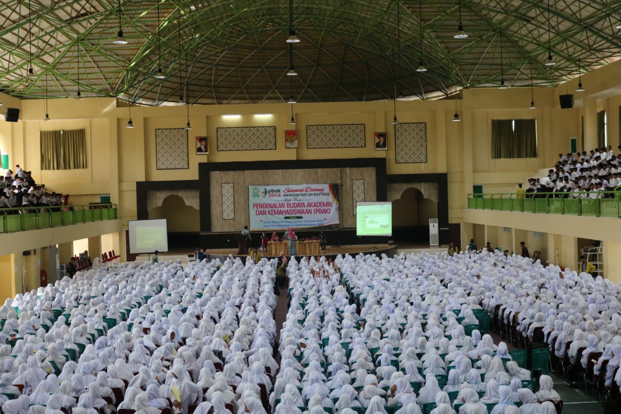 Bukittinggi (16/08/2018) – 2.232 orang mahasiswa baru Institut Agama Islam Negeri Bukittinggi (IAIN Bukittinggi) mulai hari ini mengikuti Pengenalan Budaya Akademik dan Kemahasiswaan (PBAK) di Aula Student Center IAIN Bukittinggi. Kegiatan ini merupakan kegiatan yang wajib diikuti mahasiswa baru sebelum betul-betul menjadi mahasiswa dan mengikuti perkuliahan. Kegiatan ini dibuka pada hari ini Kamis tanggal 16 Agustus 2018 dan berlangsung hingga hari Sabtu tanggal 18 Agustus 2018.