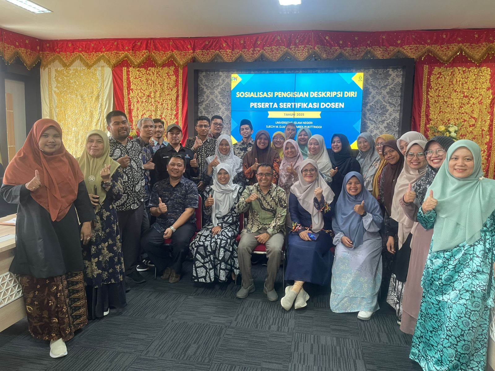 Bukittinggi, 8 November 2025 — Dalam rangka mendukung kelancaran pelaksanaan Sertifikasi Dosen (Serdos) Tahun 2025, Lembaga Penjaminan Mutu (LPM) UIN Sjech M. Djamil Djambek Bukittinggi menyelenggarakan kegiatan Sosialisasi Pengisian Deskripsi Diri bagi Peserta Sertifikasi Dosen pada Rabu, 8 November 2025, bertempat di Aula Rektorat UIN Sjech M. Djamil Djambek Bukittinggi. Kegiatan ini diikuti oleh 33 orang dosen peserta...Read More