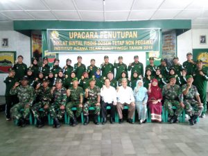 Bukittinggi – Dalam rangka pembinaan mental, fisik dan kedisiplinan, maka IAIN Bukittinggi mengadakan Diklat Pendidikan dan Latihan Pembinaan Fisik dan Kedisiplinan (Diklat Bintal Fisdis) bagi Dosen Tetap Non Pegawai (DTNP) IAIN Bukittinggi. Kegiatan ini dilaksanakan selama 6 hari yaitu pada tanggal 20 s/d 26 September 2018 yang bertempat di Secata B, Rindam I/ Bukit Barisan Padang Panjang. Kegiatan ini diikuti oleh 30 orang DTNP, yang terdiri dari 12 orang laki-laki dan 18 orang perempuan.