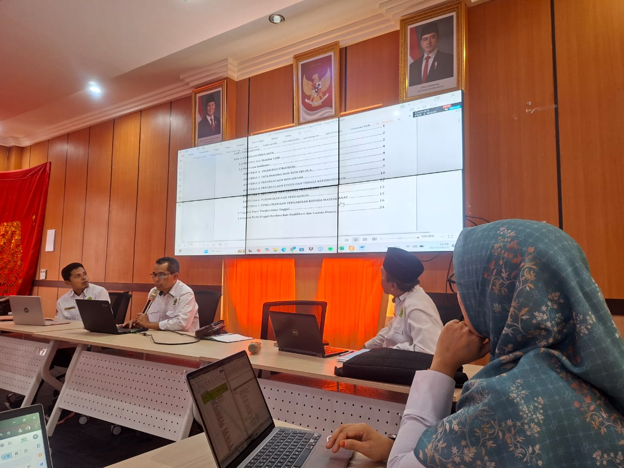 Turut hadir dari unsur pimpinan fakultas, yaitu Wakil Dekan I Dr. M. Imamuddin, M.Pd, Wakil Dekan II, dan Wakil Dekan III, serta para Ketua dan Sekretaris Program Studi di lingkungan FEBI UIN Bukittinggi. Sementara dari Tim LPM UIN Bukittinggi hadir secara lengkap, antara lain Dr. Iswantir, M.Ag (Ketua LPM UIN Bukittinggi), Dr. H. Januar, M.Pd (Sekretaris LPM), Leli Lismay, M.Pd., Ph.D (Kepala Pusat Audit dan Pengendalian Mutu), Dr. Rini Elvira, SE., M.Si (Kepala Pusat Pengendalian Mutu), dan Ulva Rahmi (Kepala Pusat Pelayanan Akademik LPM UIN Bukittinggi).