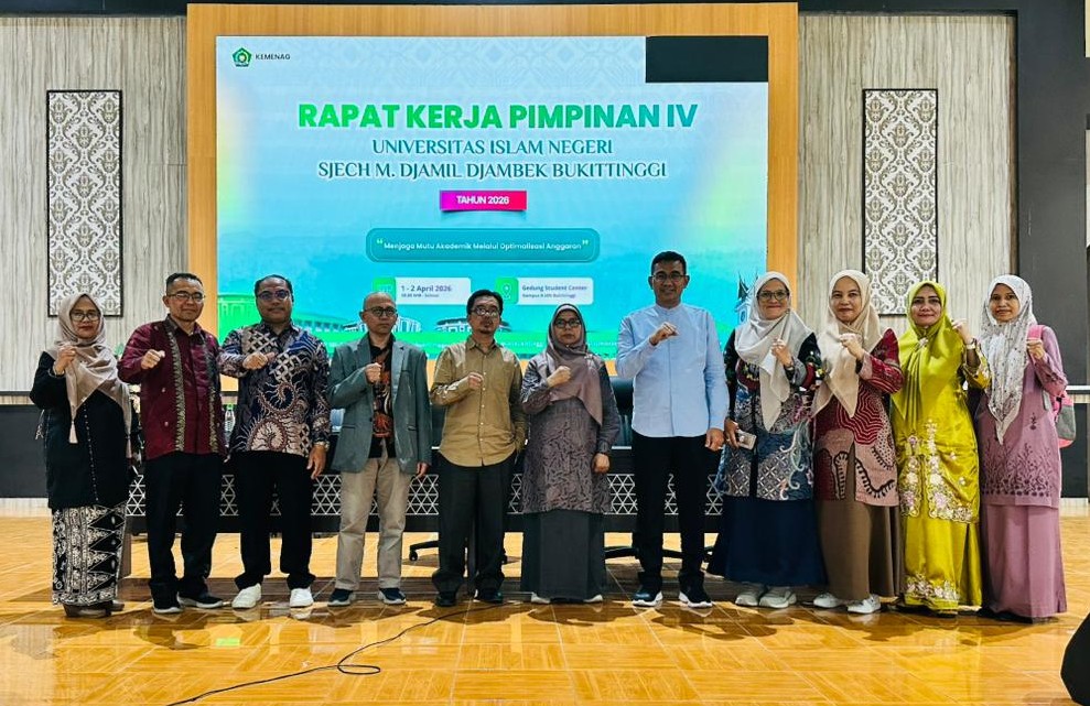 Bukittinggi — Tim Lembaga Penjaminan Mutu (LPM) UIN Sjech M. Djamil Djambek Bukittinggi menunjukkan komitmen kuat dalam memperkuat tata kelola dan budaya mutu dengan berpartisipasi aktif dalam kegiatan Rapat Kerja Pimpinan (Rakerpim) yang dilaksanakan pada tanggal 1–2 April 2026. Kegiatan strategis ini berlangsung di Gedung Student Center dan diikuti oleh jajaran pimpinan universitas, lembaga, unit kerja, serta fakultas di lingkungan UIN Bukittinggi.